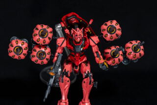 ユニコーンモードに変身。黒い(実際には濃紺)装甲と集光オレンジのコントラストはやっぱりカッコイイですね。でもやっぱり、襟周りのデザインと「アームド・アーマー」がないだけで、まるで別の機体のようです。