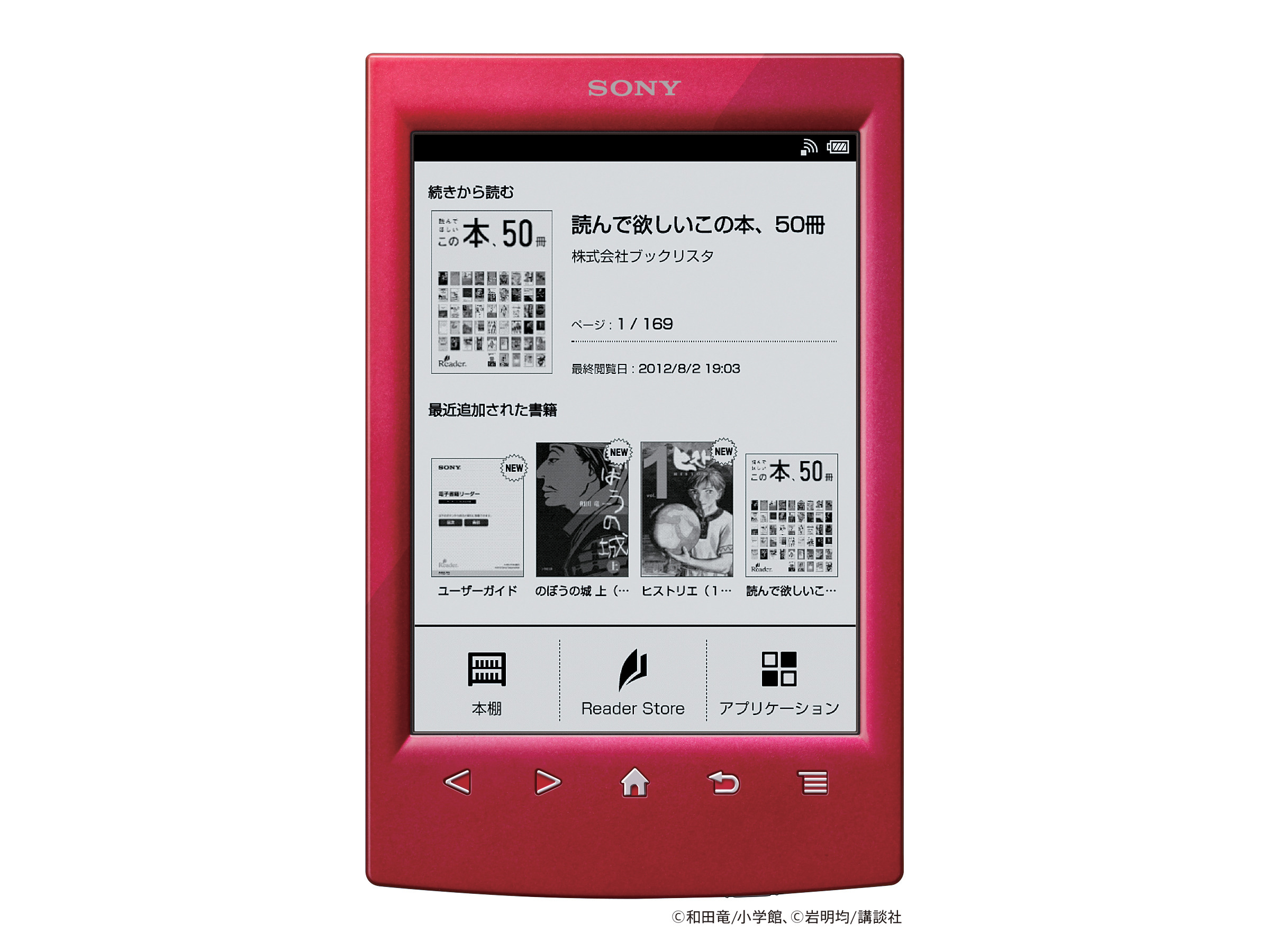 BD を観ていたら、ウチの奥さんが「原作を読みたい」と言い出したんですが、あの分厚い本を全巻収める余裕は我が家の本棚にはなく(『ガンダム THE ORIGIN』を全巻愛蔵版で買ってるお前が言うな、というツッコミはナシで(ぉ))、それなら電子書籍がいいんじゃない?ということで、Sony Reader を買ってきました。私が持っている PRS-350 は自分でときどき使っているので、奥さん用に。