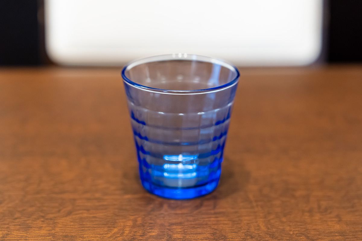 このグラスが最も映えるのはやっぱり水ですね。光が青く透過することで、特にこの季節は涼しさ倍増。
