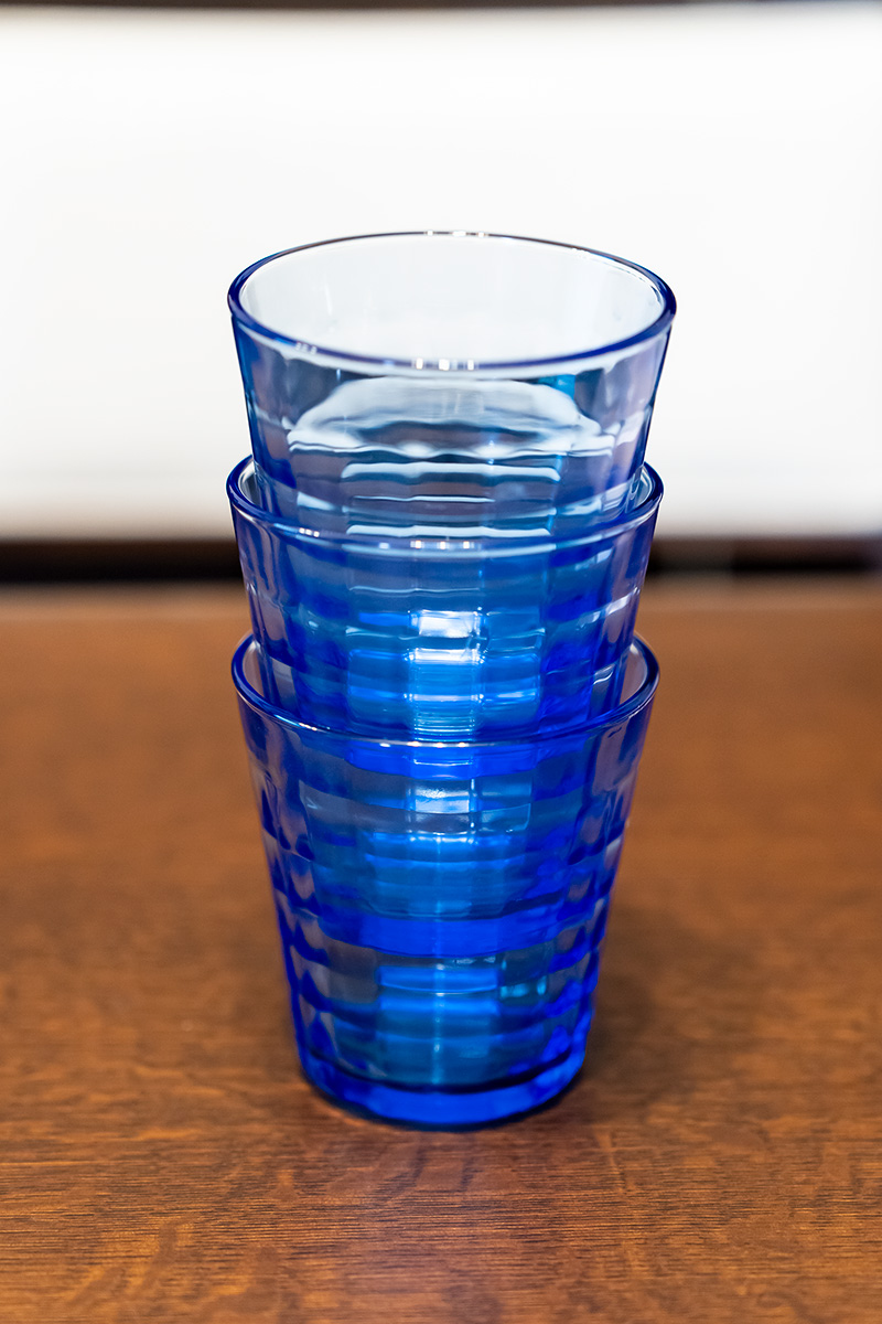 今まで使っていたのはフランス DULAREX 社のピカルディ。ガラスコップの定番中の定番で、強化ガラスの丈夫さと重ねて収納できる利便性が気に入ってたくさん買って愛用していました。が、いくら丈夫とはいえ長年使ううちに割れたり欠けたりして数が減ってきてしまったため買い換え。