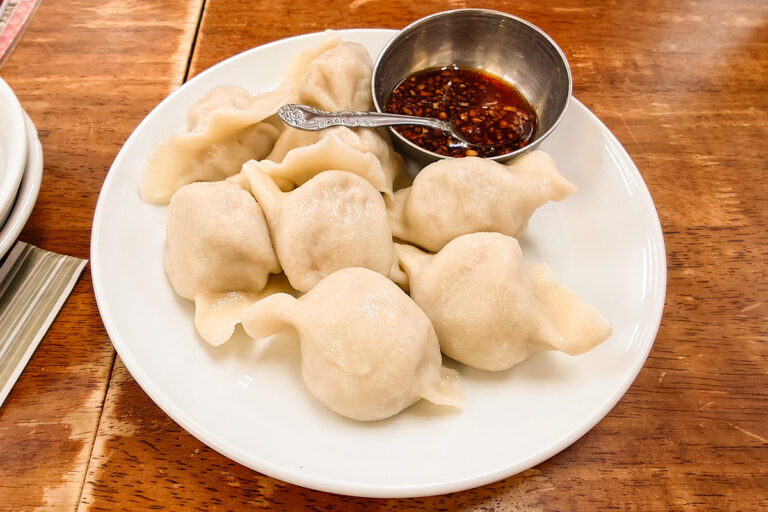 水餃子といってもスープに沈んでるわけじゃないんですね。茹でた餃子が水揚げされた状態で出てくるのはちょっと珍しいかも。