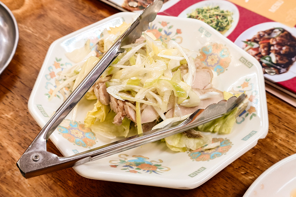 蒸し鶏のネギ油かけ。バンバンジーと少し迷ったけど今回はこっちで正解でした。鶏肉のうまみとネギ油の香ばしさが絶妙なコンビネーション。良い具合に餃子から目先を変えてくれます。