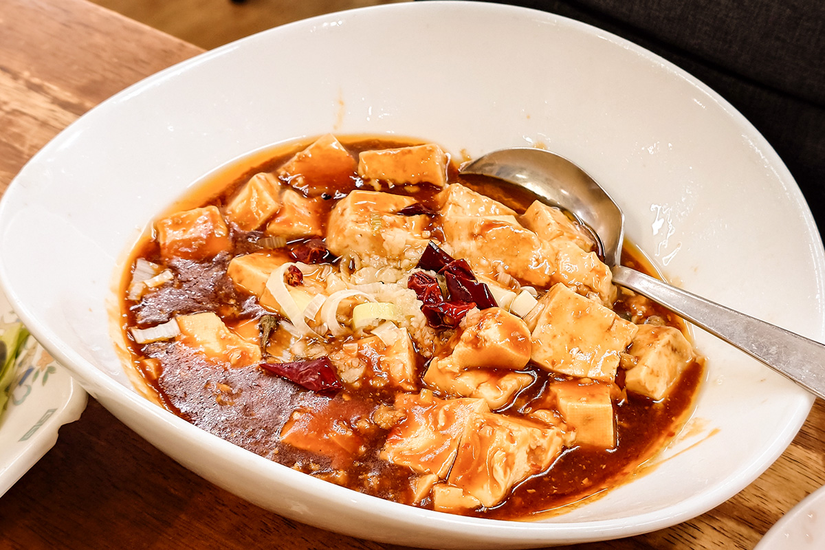 鷹の爪が容赦なく入っているからちょっと身構えたけど、そこまで激しく辛くはない旨辛。やっぱり麻婆豆腐を食べないと中華を食べに来た気がしない、というくらいに麻婆豆腐が好き。