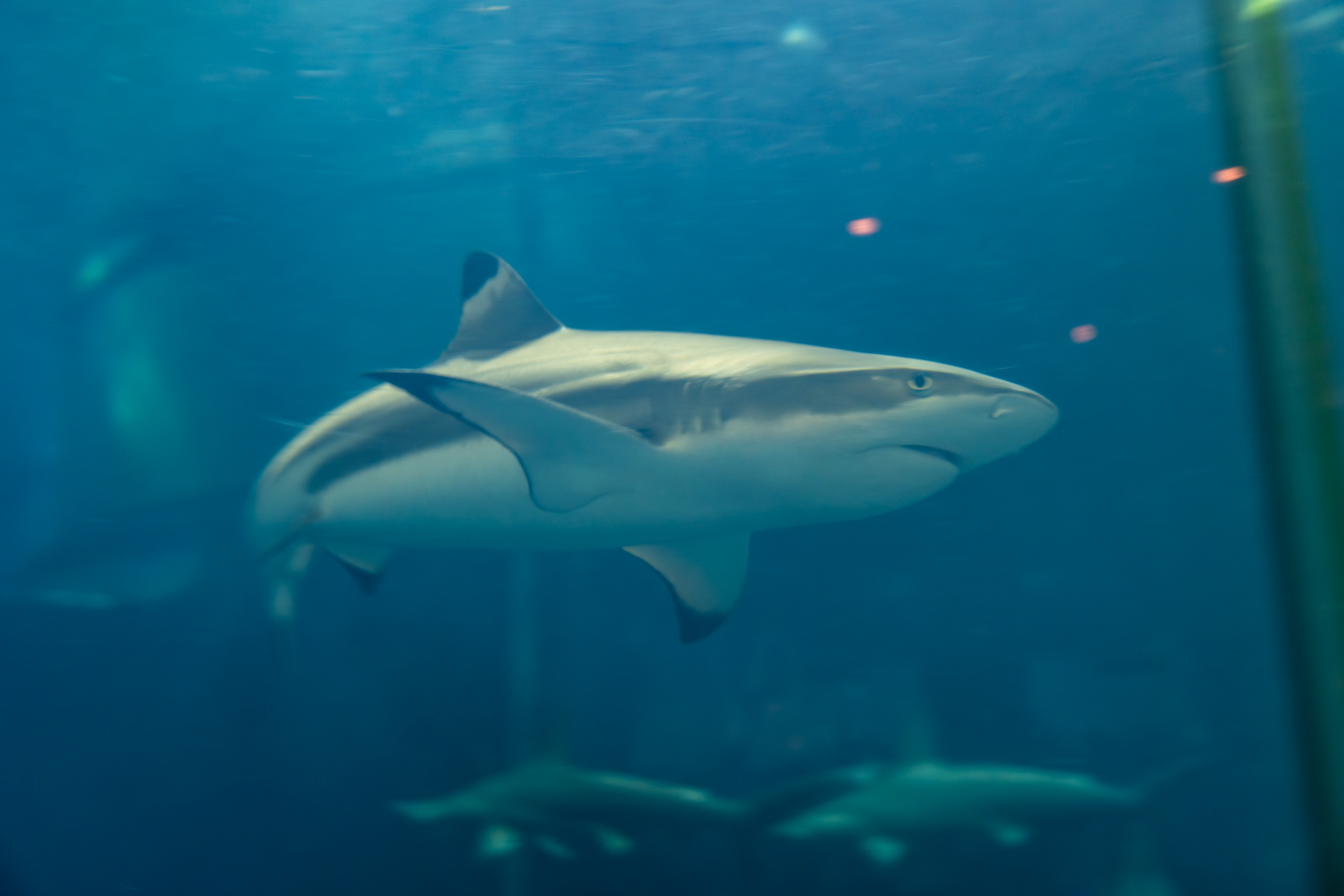 マグロ、大きな個体は顔面が隆起して岩のようにゴツゴツしています。高知で養殖されたクロマグロをここに搬入して飼育しているとのことですが、概要を泳いでいるのではなくてもいろんなところや他のマグロにぶつかったりしてこういう姿になるのか。まるで歴戦の柔道家のよう。