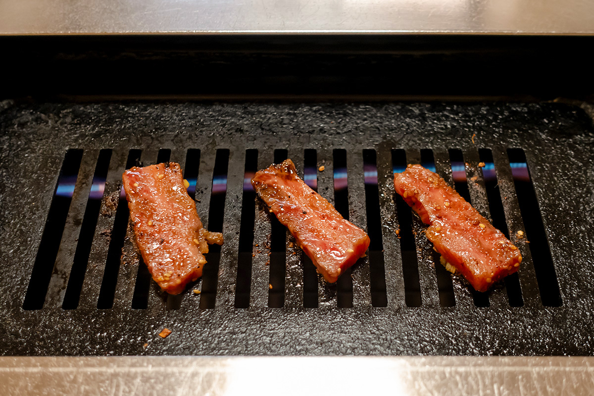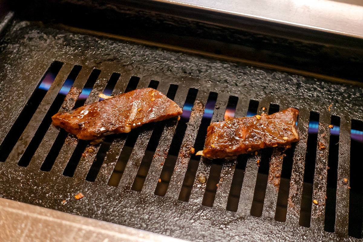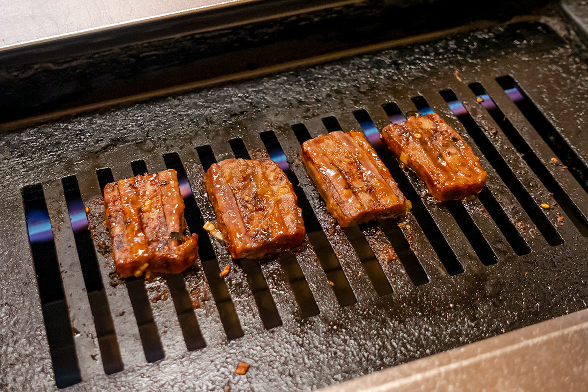 火にかけると中から脂がジュワジュワ溢れてくるゲタカルビ。もう見てるだけでヨダレが出てくる。