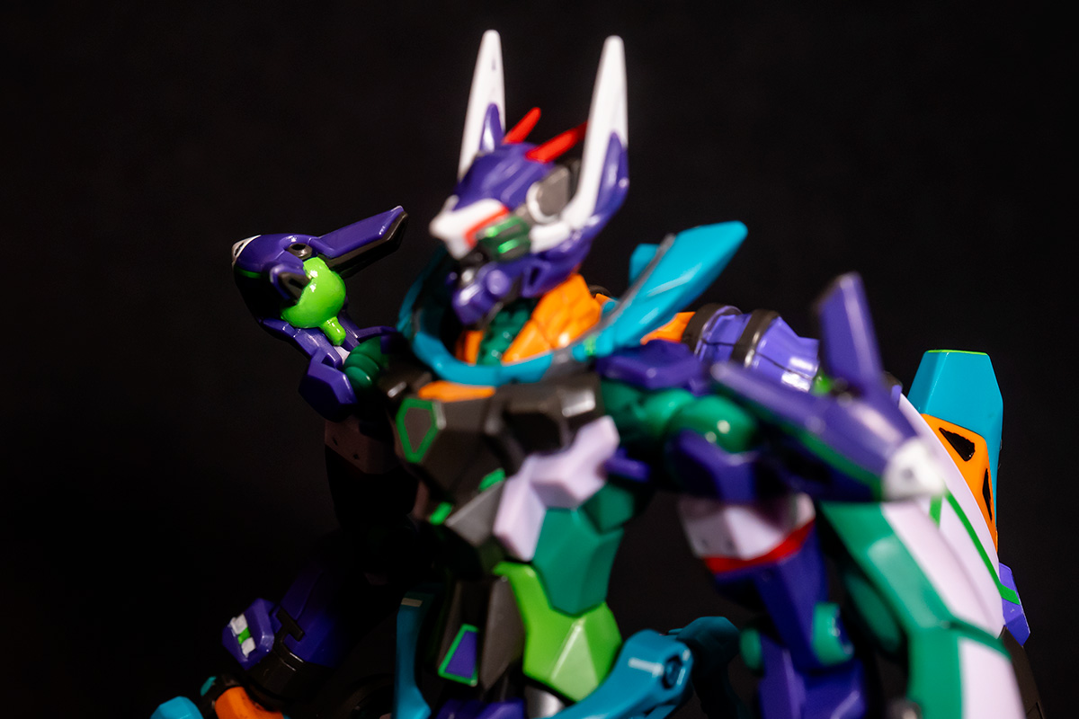 肘のヒンジ部にある緑色のリングパーツの内側はライトバイオレットで塗装。超細かい部分ですがここを塗るだけで精細感が一段上がって見えるから不思議なものです。