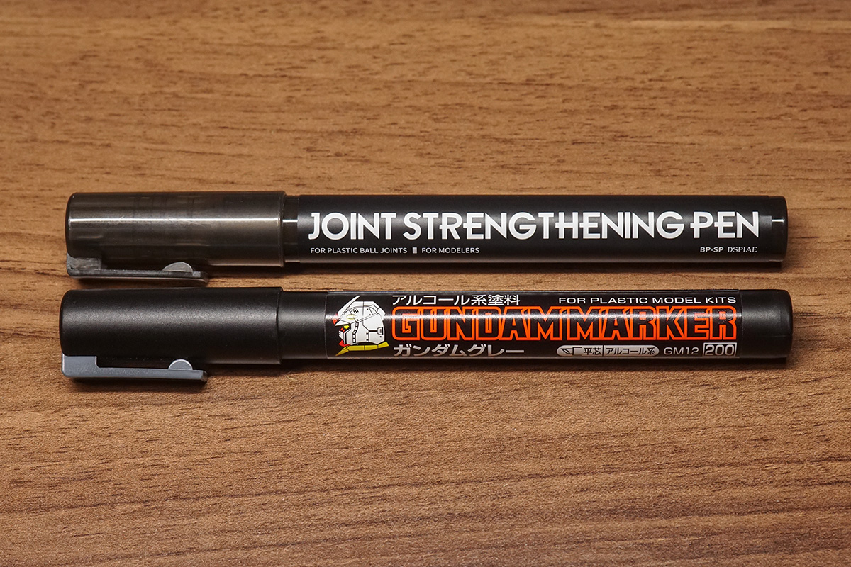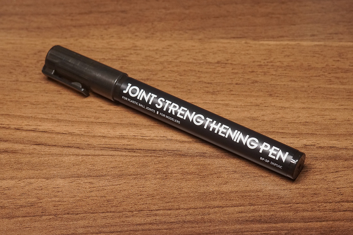 ボールジョイントの強化というとボールに瞬着(瞬間接着剤)を塗って太らせる手段がよく知られています。でも瞬着をつけるということは樹脂が瞬着と化合して物性が変わる→元の素材よりも脆くなったりしそう(化学詳しくないから単なるイメージだけど)で個人的にはちょっと怖い。それに対してこの関節強化ペンは樹脂を冒さずにボールジョイントを太らせることができるということで、買ってみました。