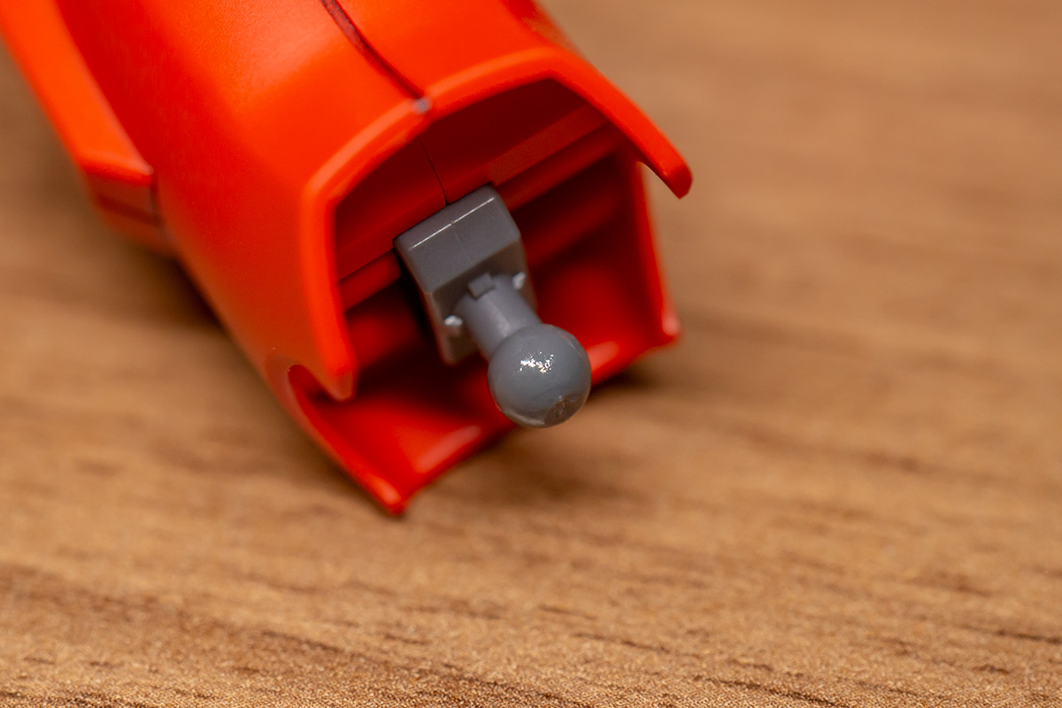 ただこの塗膜はやや光沢感を持っているため、模型をつや消し~半光沢で仕上げる場合は関節の外から見たときにあまり目立たないように(ボールジョイントの中心線よりも軸側にはあまりはみ出さないように)塗った方が良さそうです。