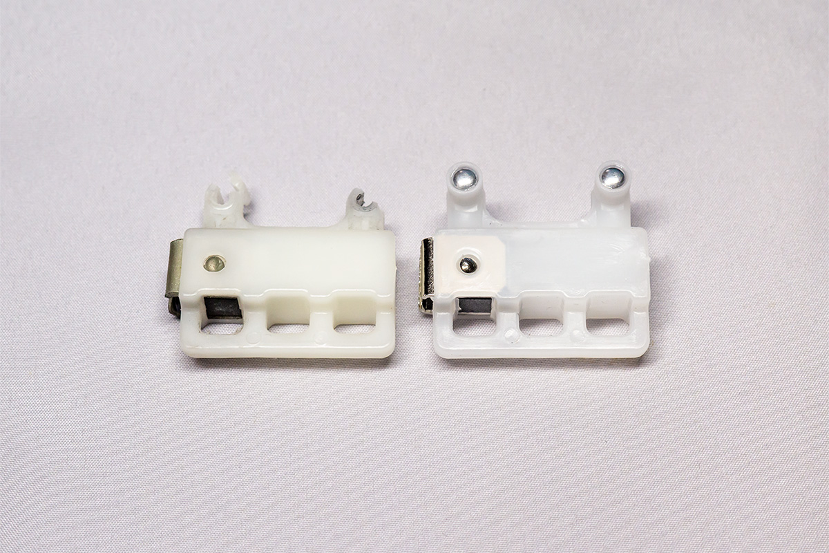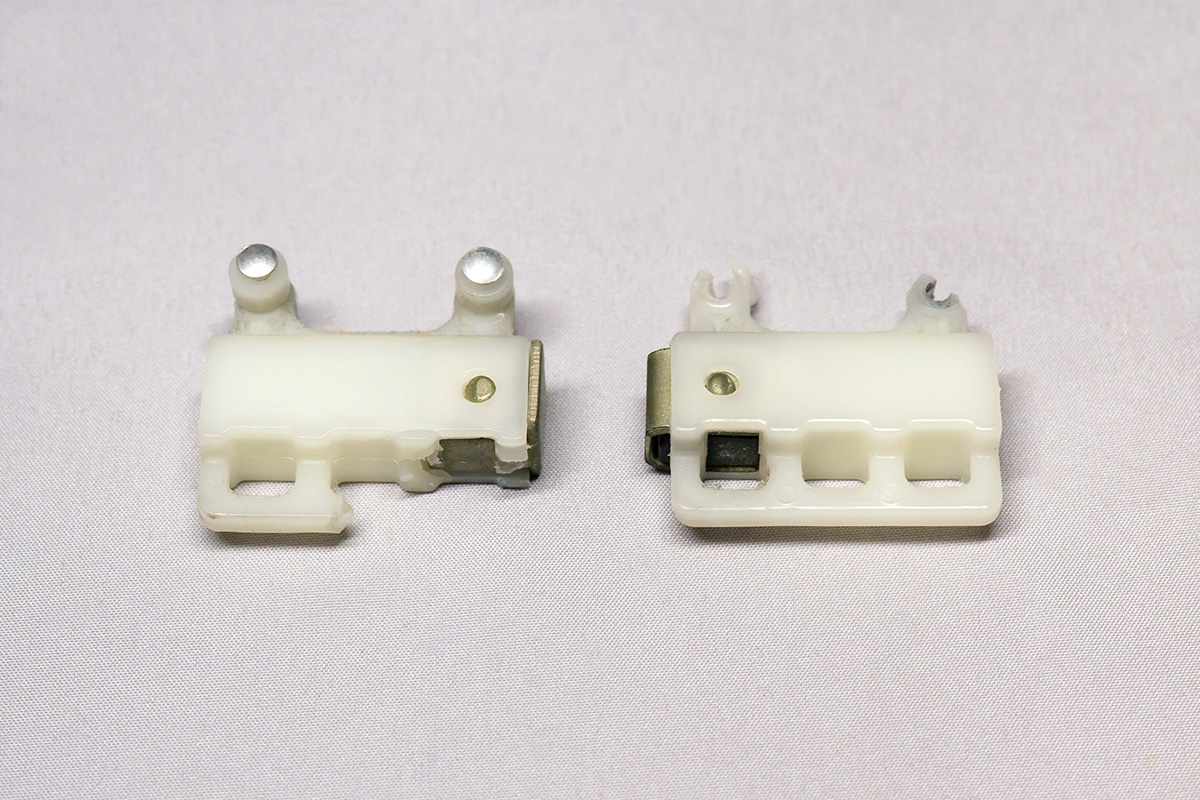 新旧比べてみると古い方は明らかに黄ばんでますね。破損の原因はパーツの摩耗だけでなく酸化や紫外線による劣化も関係していそう。