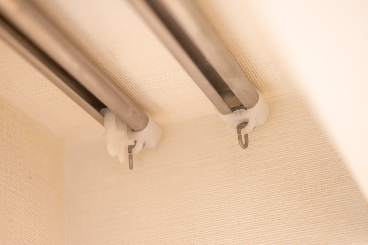 先日吊戸のストッパーを交換したところですが、今度は書斎のカーテンが壊れました。