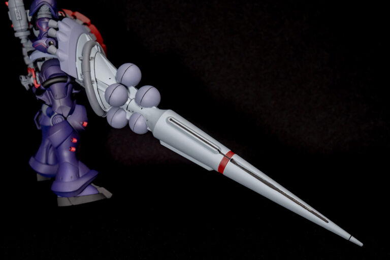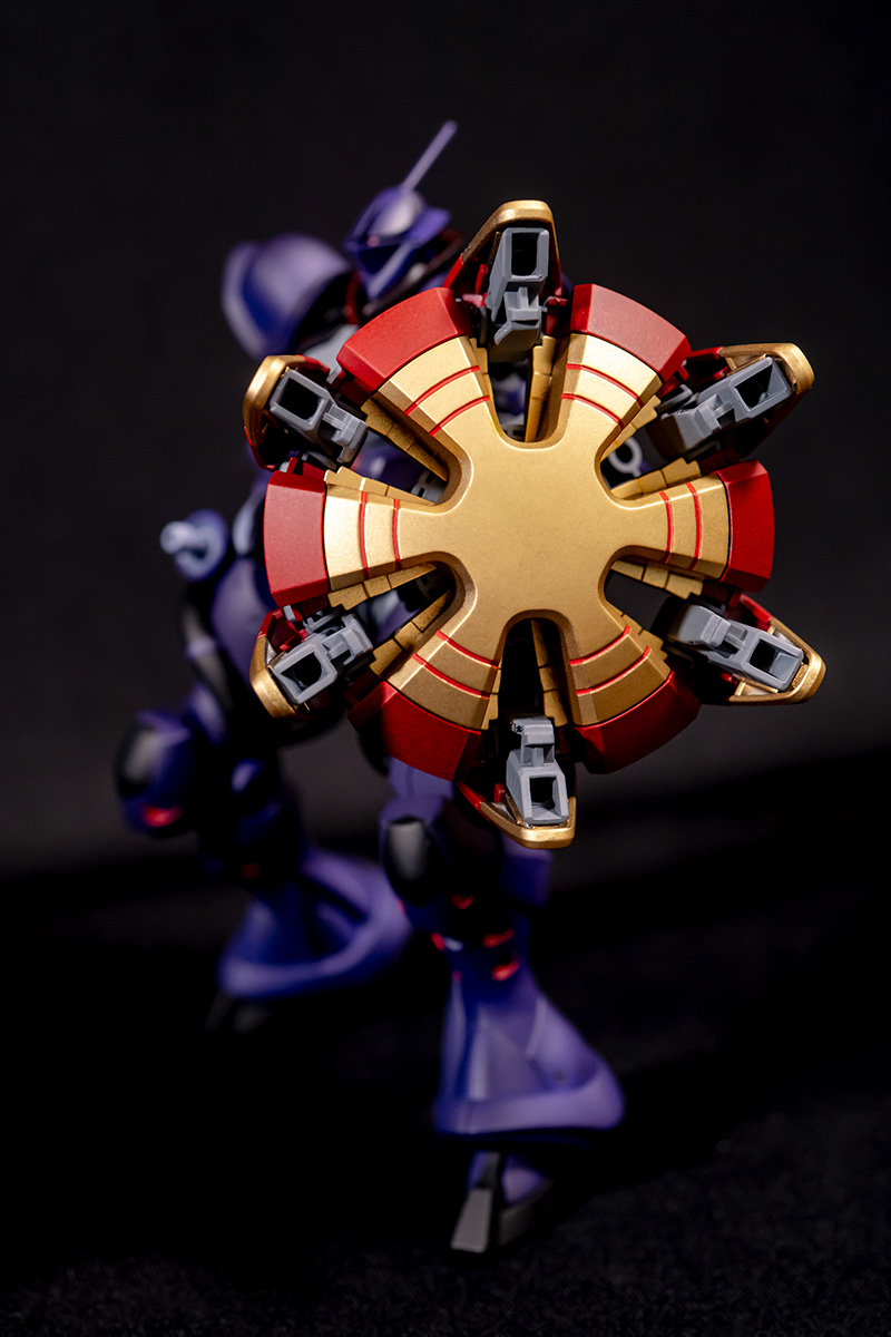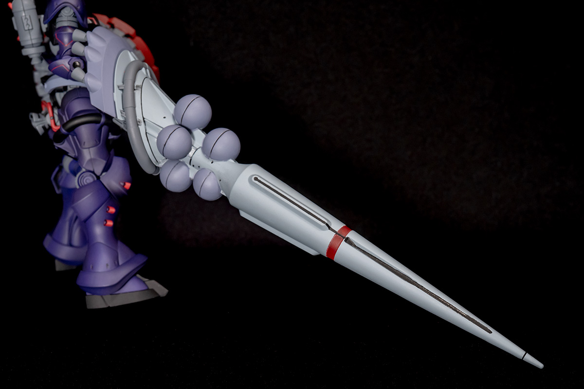 この紫色ベースのカラーは正史におけるマ・クベ機からの引用だと思われますが、マ・クベ機よりもグッと渋い配色なのがカッコイイ。