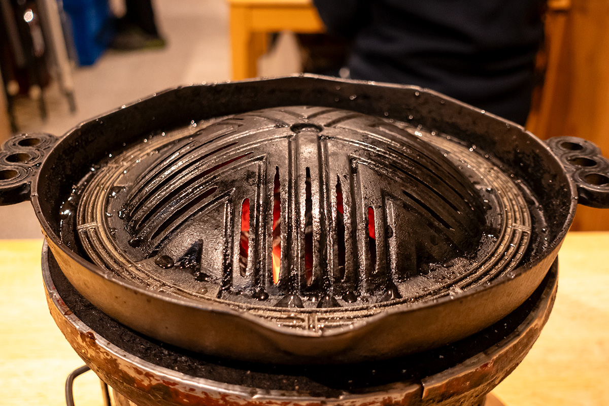 その鍋の上にジンギスカンセットが広げられるわけです。
