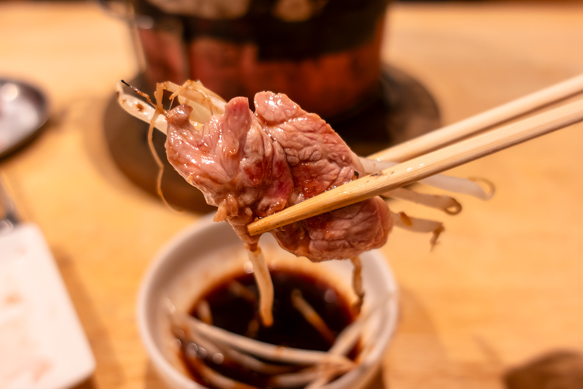 バカヤロウ級に旨いモモ肉、噛むほどに肉汁が溢れてくるショルダー。そして鍋で野菜と一緒に焼くことで網焼きとはまた違ううまみを見出すチャックロール。タレチャックもなかなかいい。