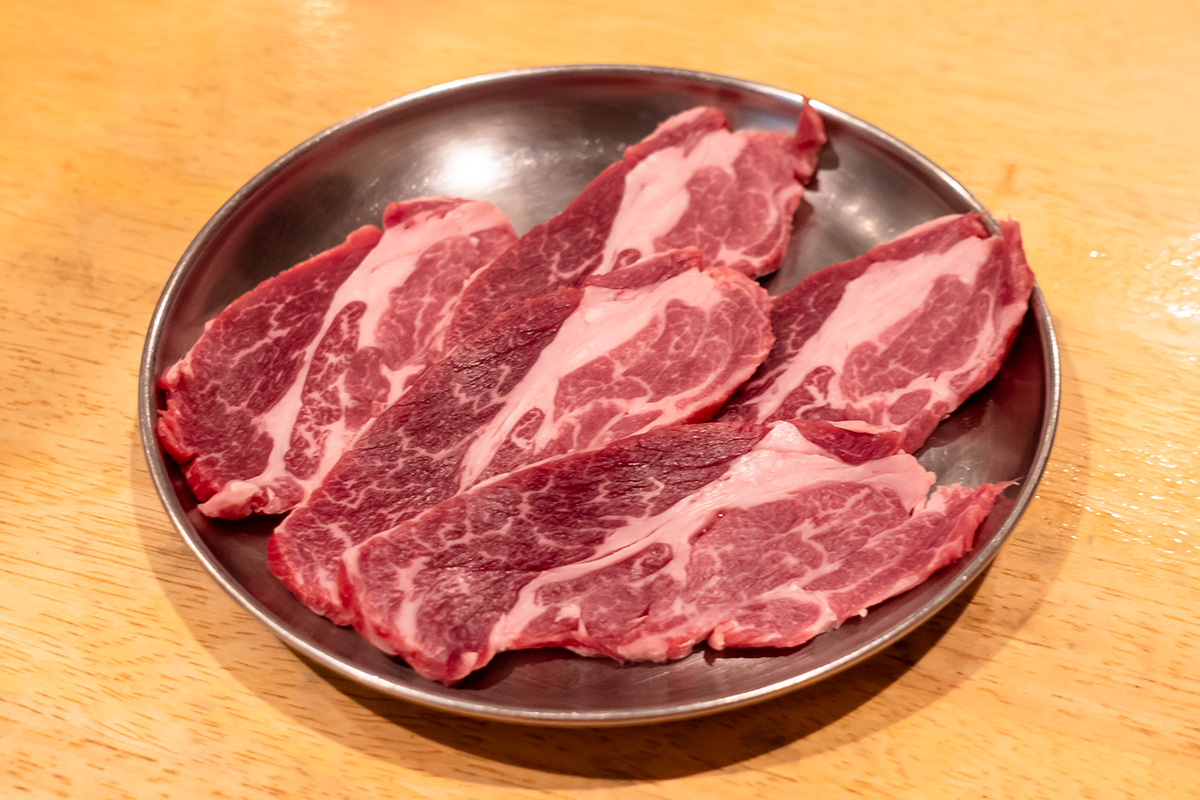 肉も脂もフレッシュなチャックロール。肉なのにさっぱりとして、脂も下の上でサッと融ける。牛焼肉とは全く別物のうまさ。
