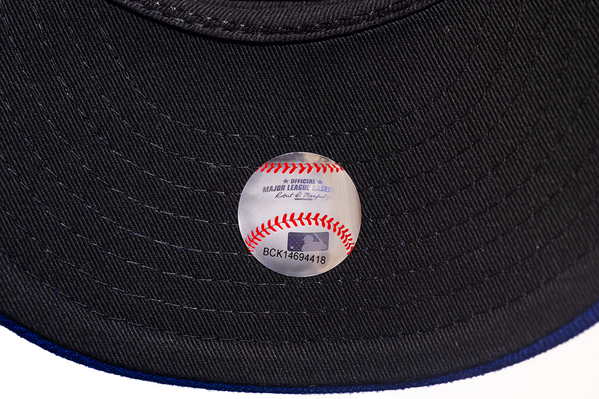 ブラックモデルではここまで徹底してオールブラックだったMLBのマークはブルーモデルではトリコロールに。