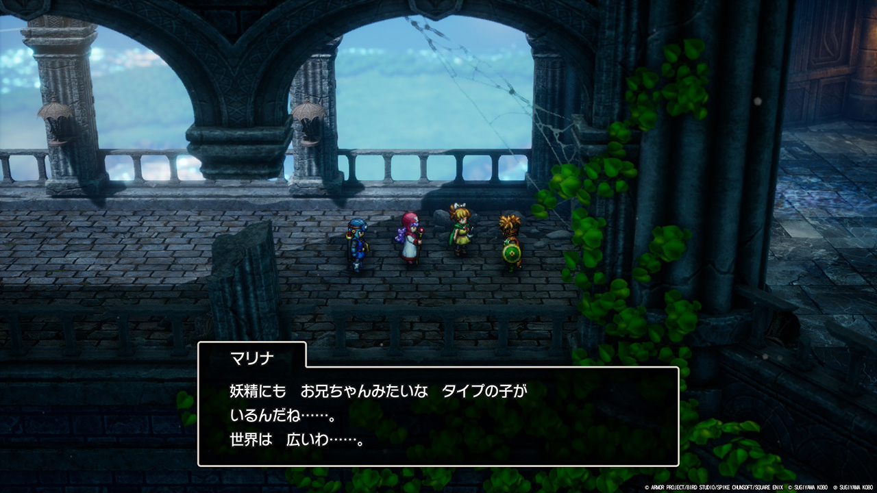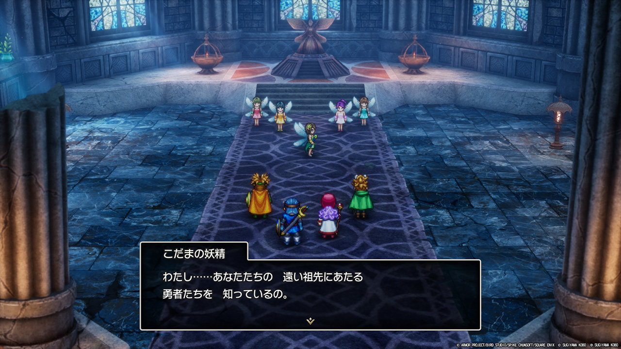 ロトの勇者の子孫としてIに登場した妖精たちに再会するのはとても感慨深い。そして、ここから五つの紋章探しの旅が始まります。
