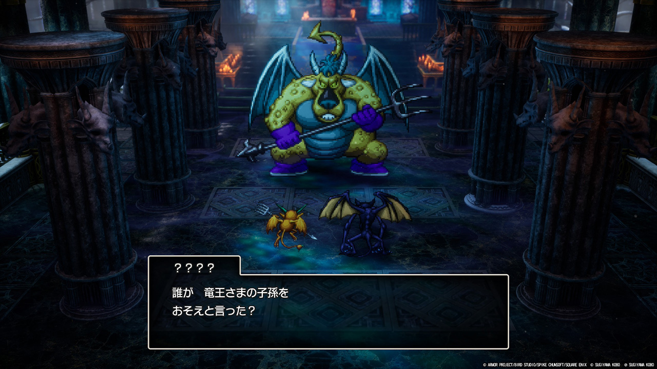竜王の城の最深部には城の主である竜王…のひ孫が。オリジナルの竜王と同じく大塚芳忠ボイス、だけど少しコミカルな感じになった竜王のひ孫はなんだか愛嬌がある。