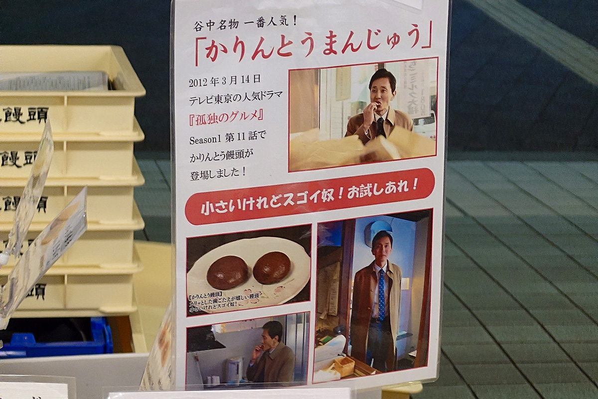 その中に、ときどき谷中の和菓子店がどら焼きやかりんとう饅頭を売っていることがあり、私もよく買っています。そしたら先日その店が『孤独のグルメ』に登場したことをアピールしていて今さらながらSeason1の11話に出てきたお店そのものであることを認知しました。