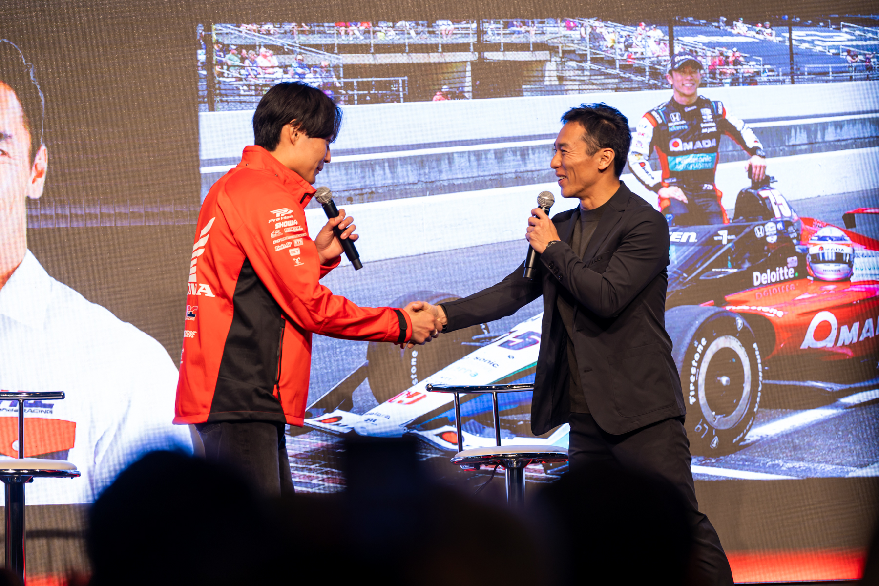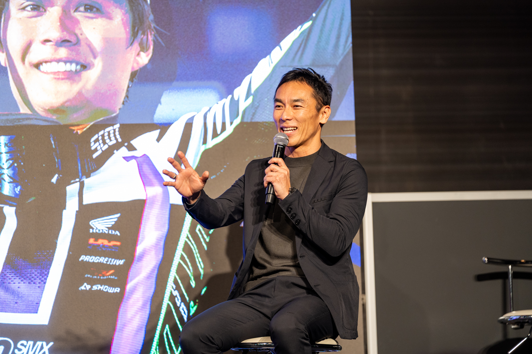 ここで特別ゲストとして四輪レーサーの佐藤琢磨が登壇!