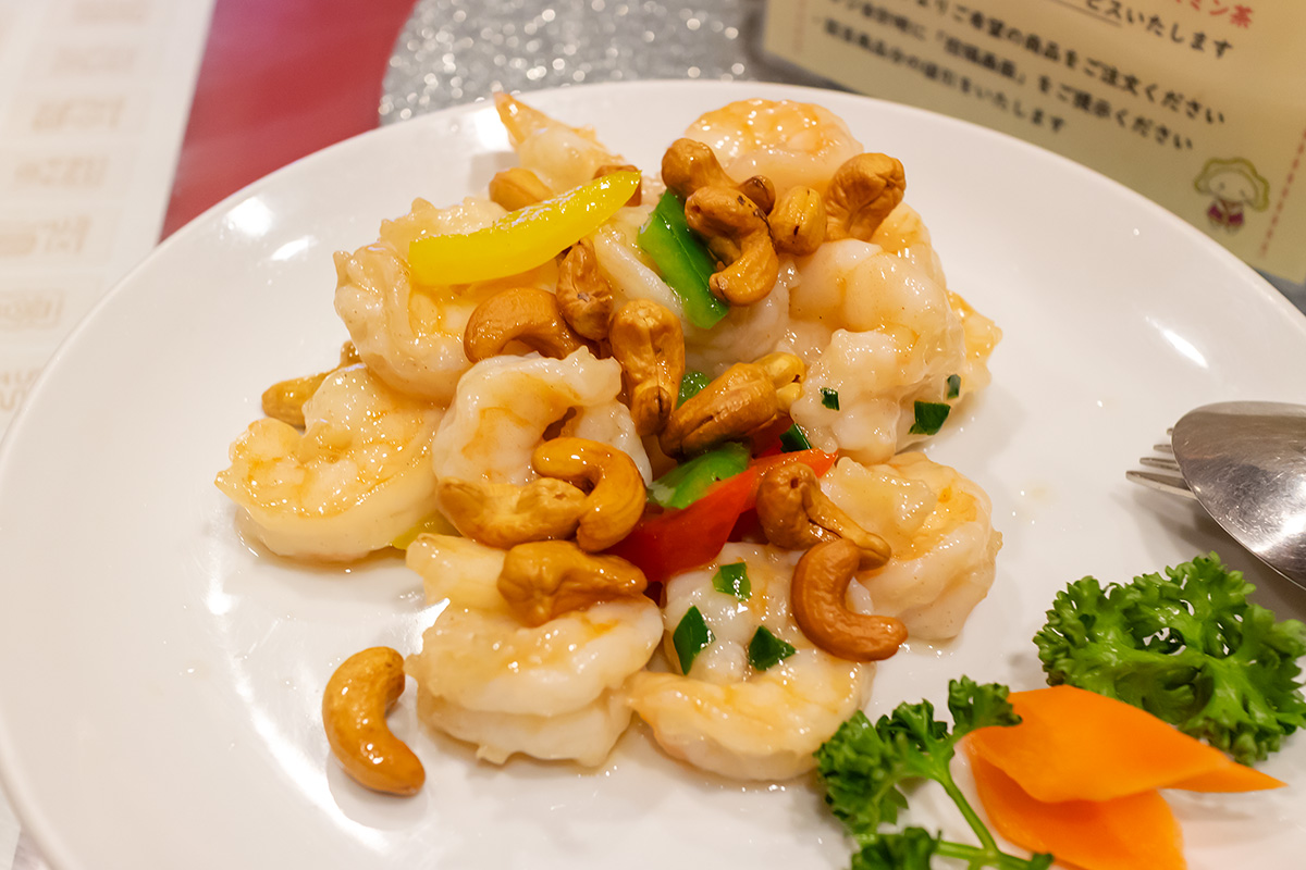 二品目は海老とカシューナッツの炒め。カシューナッツ好きなんですよ。だから中華料理のカシューナッツ炒め系も大好物。