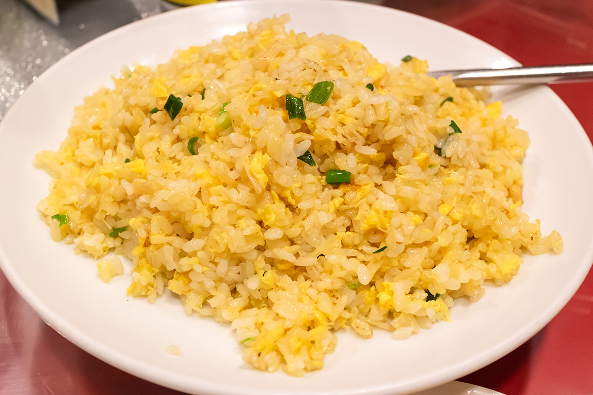 〆の炒飯。見た目はこれまたオーソドックスなパラパラチャーハンながら、干し貝柱が入ってて旨味強め。