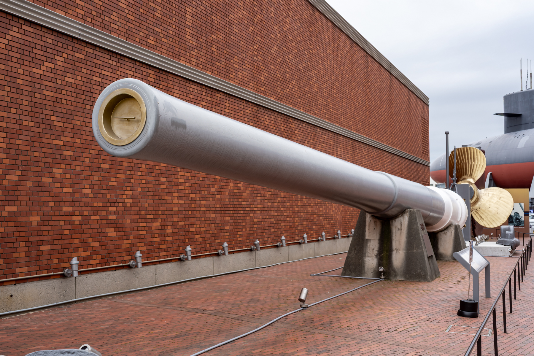 ミュージアムは閉館していたけど屋外にあるこれだけは見ることができました。戦艦大和…ではなく陸奥の41cm砲。同じものの一門が横須賀港のヴェルニー公園にも展示されているのですが、とにかく巨大。この主砲のサイズ感から戦艦の大きさを推し量ると気が遠くなります。