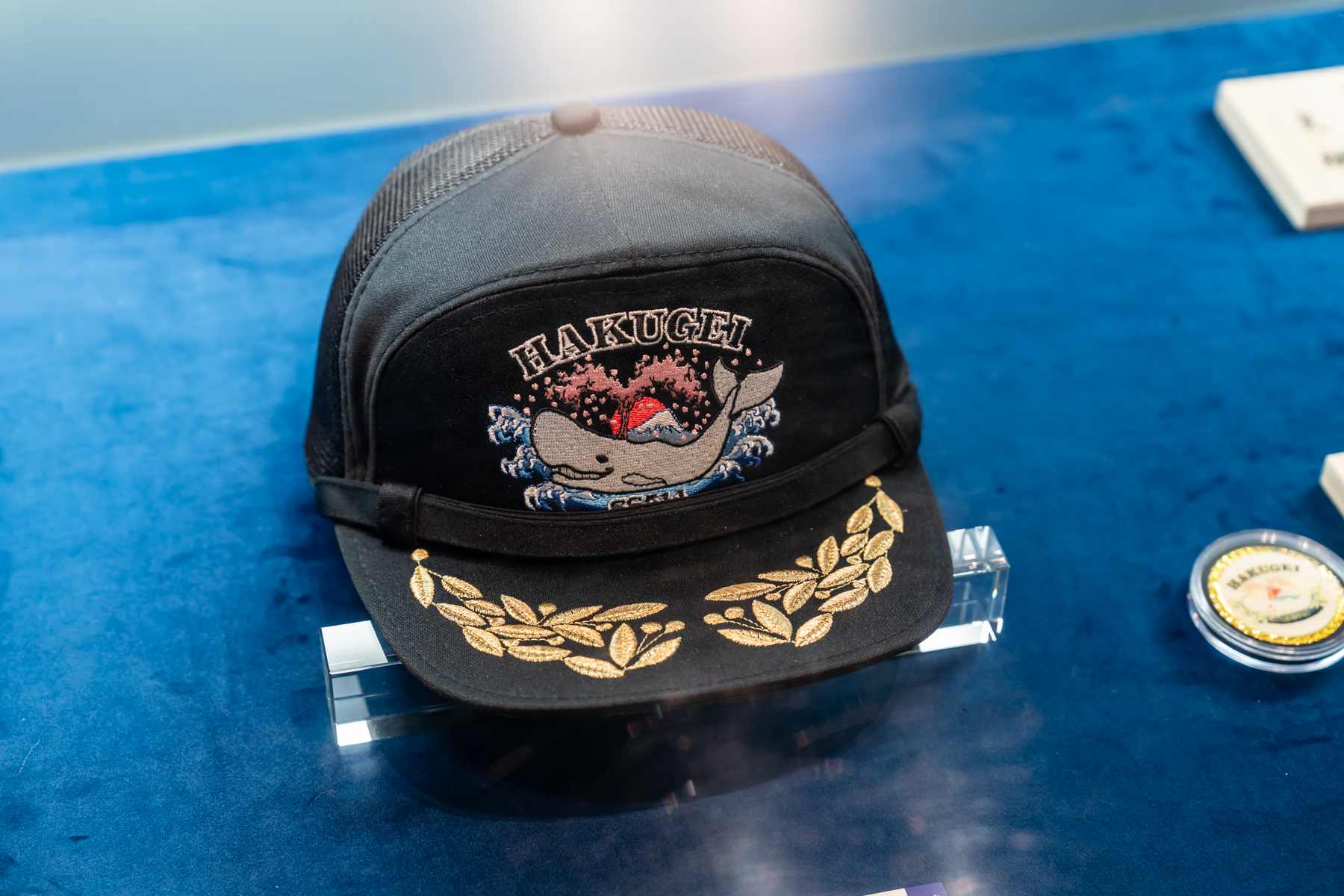 こちらは潜水艦「はくげい」のものですが、艦のアイデンティティーを表すイラストが秀逸。しかもそれが刺繍で表現されているという。