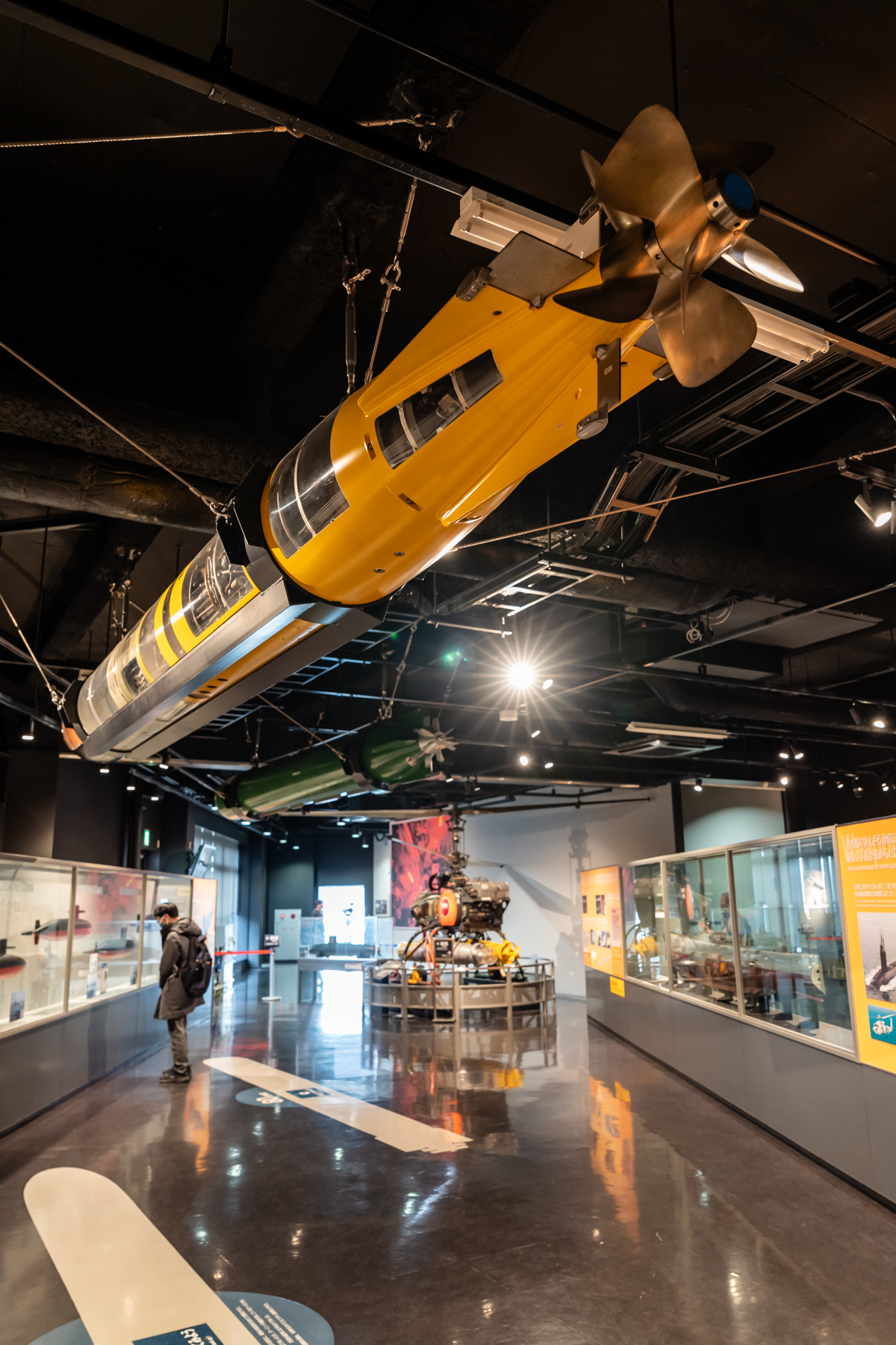 潜水艦に搭載される魚雷の実物大模型。潜水艦モノの映画は好きでよく観ますが、実物のサイズ感や構造を知ると映画を観るときの解像度が上がりそう。