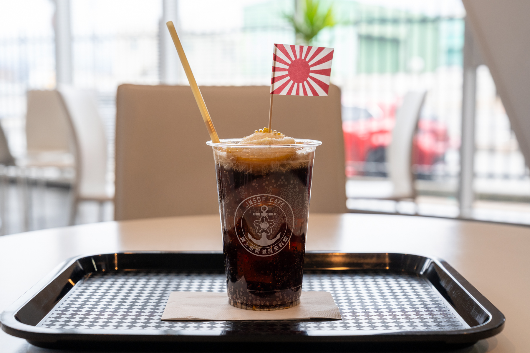 あきしおの見学後は館内のカフェで小休憩。さっき見たカレーがおいしそうだったから少し食べてみたい気分もあったのですが、昼食を食べてきた直後だったから「瀬戸内レモンコーラフロート」だけいただきます。