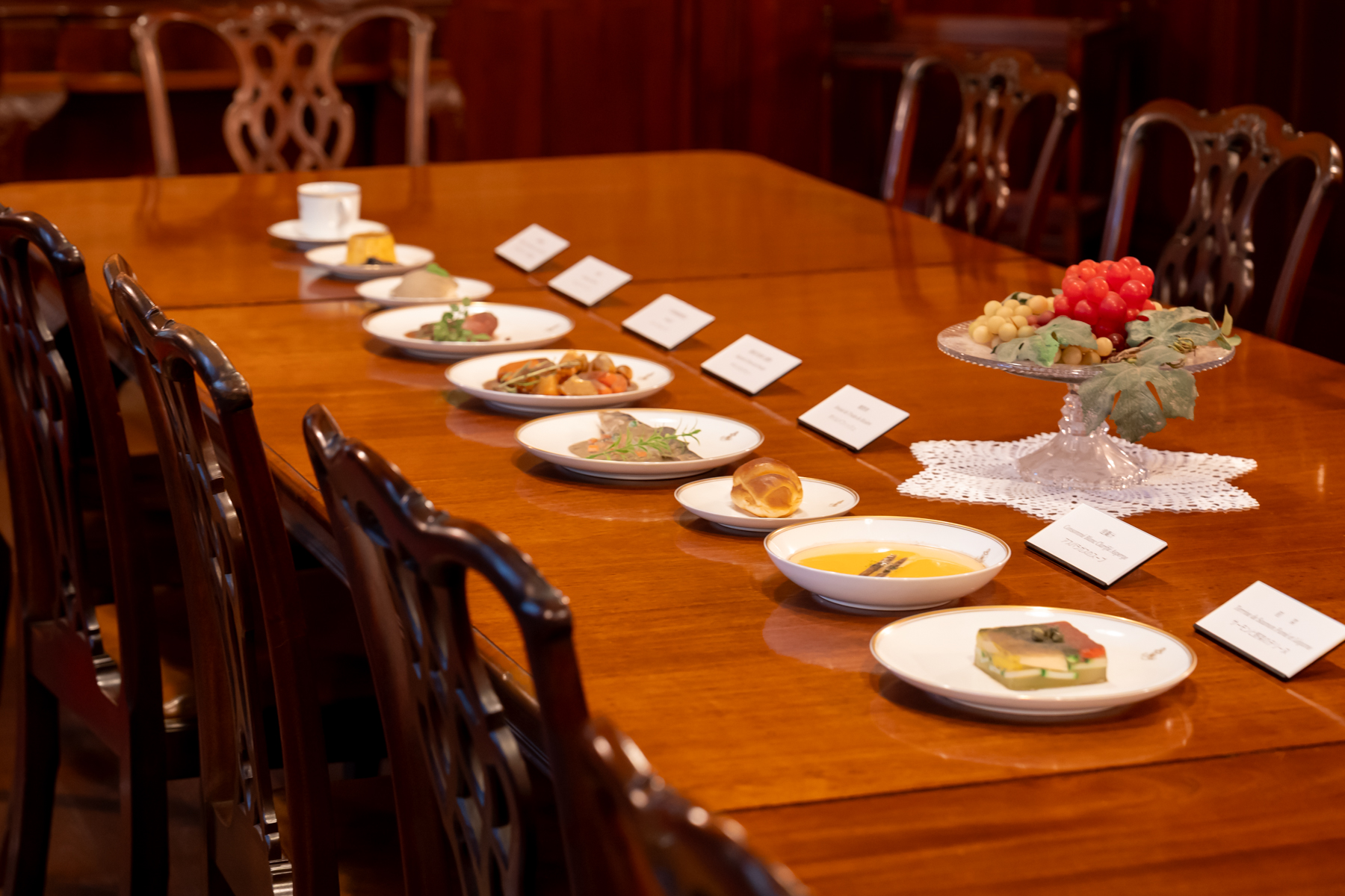 これまた映画に出てきそうなダイニングルームには当時ここで提供されていた料理のサンプルが展示されています。