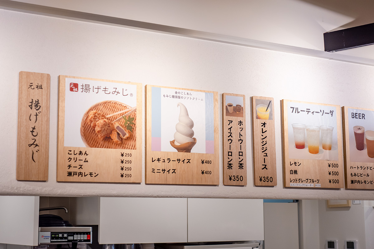 イートインメニューは揚げもみじ以外にもソフトクリームやドリンク類があって、宮島へのフェリー待ちや宮島帰りの小休憩に立ち寄るのに良さそうな雰囲気。