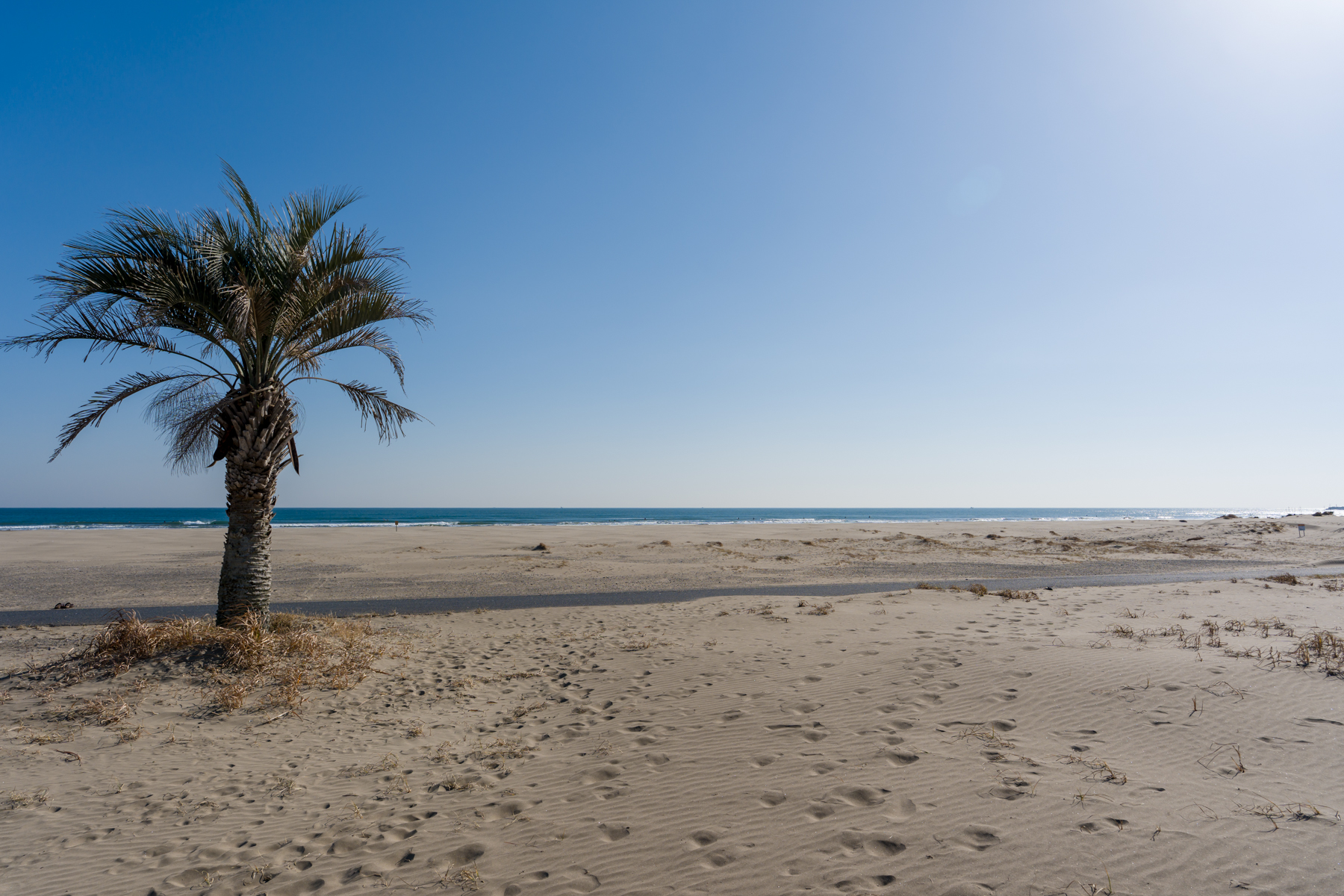 孤独のグルメの劇中では荒野、あるいは砂漠のシーンとして使われた場所だけあって、切り取り方によっては本当に砂漠に見える。よく見ると砂に無数の貝殻が埋まっていることに気がつかなければここが九十九里浜とは思えない写真が撮れます。