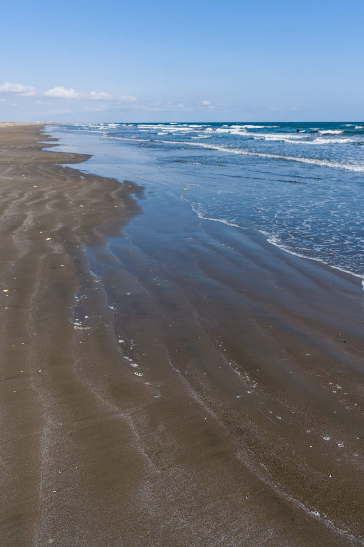 九十九里浜の実際の長さは約66km(16里くらい)で99里(約400km)には全然届いていないらしいですが、現地に立ってみた感覚としては本当に400km先までこの光景が続いていそうな気がします。まあクルマで1時間以上走ってもずっと砂浜、っていうのもすごい話ですけどね。