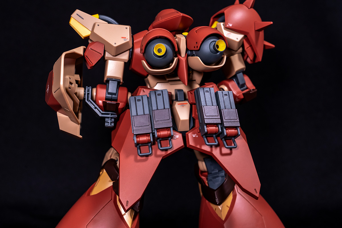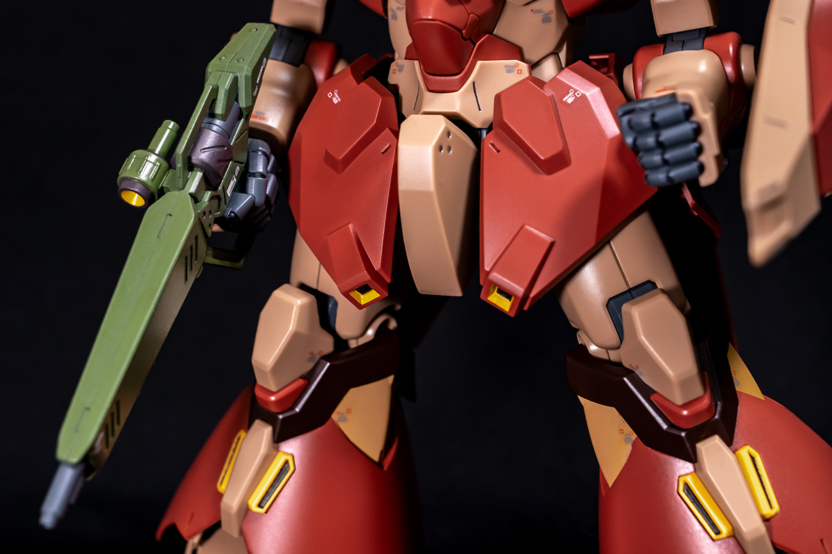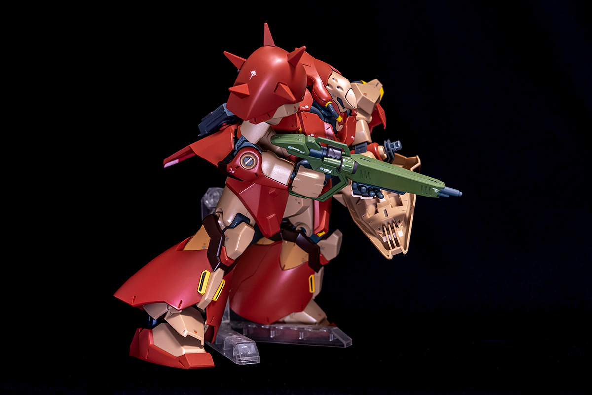 メッサーは「ギラ・ドーガを再設計した機体」という設定になっていますが見た目的にはあまりそういう印象はないし、そもそもサイズからして違う。でもモノアイ周辺の意匠はギラ・ドーガというよりヤクト・ドーガっぽさを感じさせるところはあります。まあこのあたりは半分死に設定みたいなものかな。