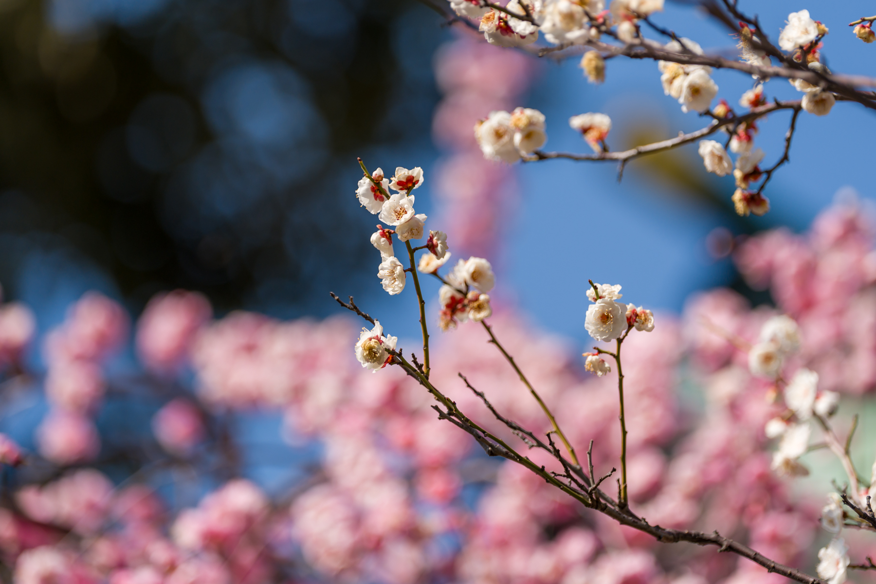 白梅って青空バックに映えますよね。桜とは違う、黒い複雑な枝ぶりもまた青地に書かれた毛筆のようで迫力があります。
