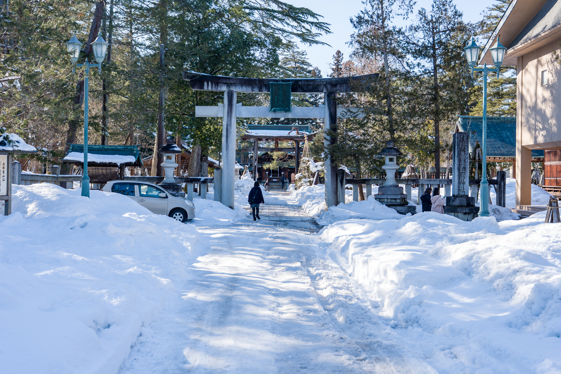 もう正月でもないから参詣する人はまばらながら、境内は雪かきもされていてそれなりに歩ける状態。