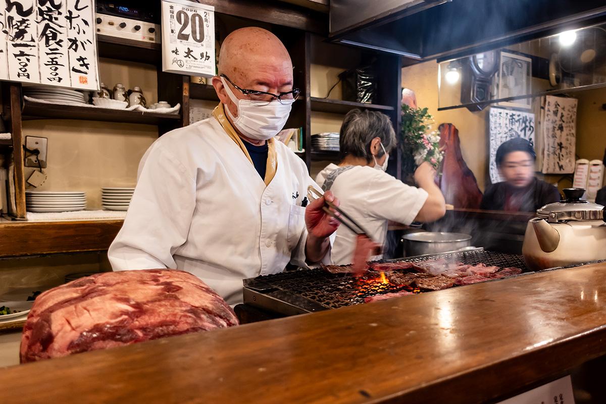 カウンターの向かい側では大将がひたすら寡黙に牛たんを焼き続けています。