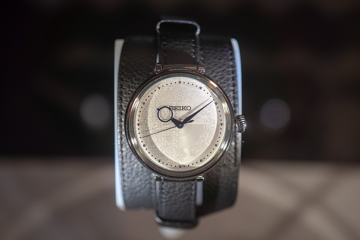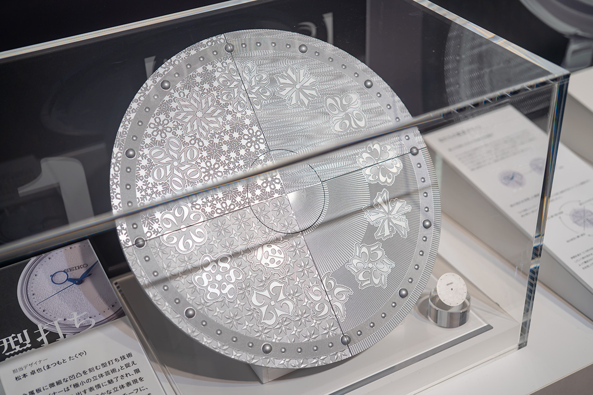 型打ちとは腕時計のダイヤル面に微細な紋様をつける加工のことで、グランドセイコーなんかだとすごく凝った文字盤のモデルがありますよね。これはその技術を使って文字盤に日本の四季を表現する紋様を打ち込んだ腕時計です。