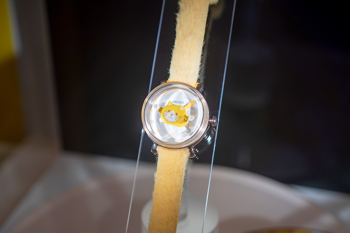 でもこれはこだわりすぎた…というよりは「猫好き専用腕時計」って去年までのイベントに出すべきだったやつじゃないですか?と思ったら、猫の手が秒針、足が分針、尻尾が時針になっている。