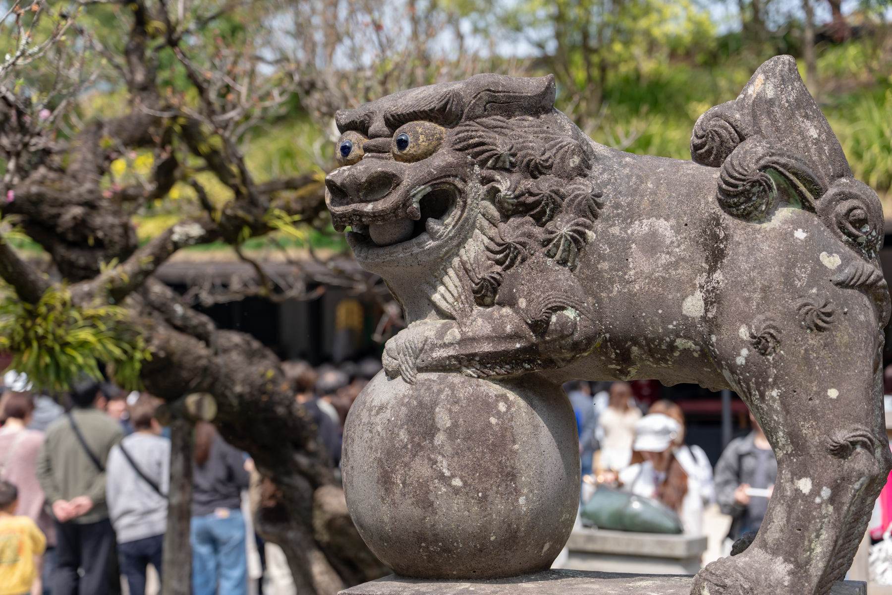 ちょうど春休み期間ということもあってものすごい人出。境内だけでなく参道もごった返していました。受験などの合格祈願をする時期じゃないはずだけど、新年度に向けて勉学関連の祈願をしにくる人が多いということですかね。あるいは、単に春休みの旅行で福岡に来た人の定番ルートとして選ばれているだけなのか。