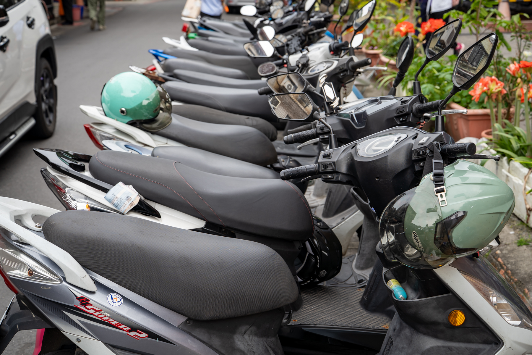 そして台北といえば原付の街。台北に限らず東南アジア方面は全般的にそうだと言いますが、街中を大量の原付が走り回っています。赤信号になると自動車よりも前にスクーターの群れができて、青に変わると同時にまるでレースのように一斉にスタート。原付自体は日本でも走ってるけどここまで普及してないですよね。しかも走っているスクーターのほとんどが日本メーカー製というのもまた面白い。