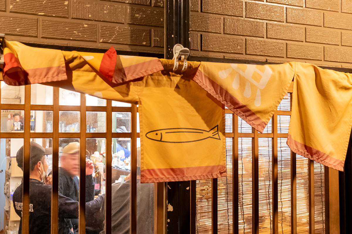 劇中では焼肉屋を探し歩いた井之頭五郎がこの店の「焼魚」の暖簾に目がとまって店に入る、というくだりがありましたが、我々が行ったときには暖簾がグルグルに絡まっていて文字が判読できず(笑