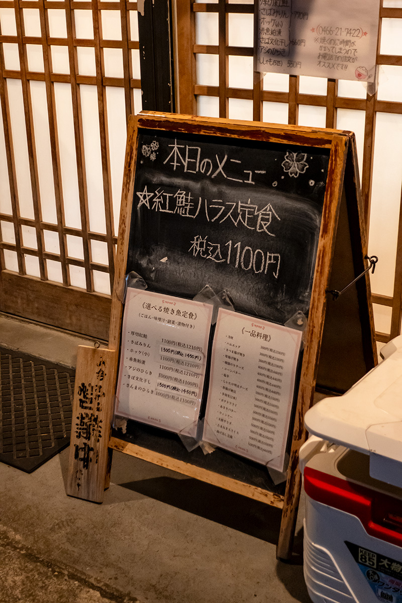 今回は何を頼むかある程度決めてきてあるけど、この黒板メニューにある紅鮭ハラス定食もすごく気になる。