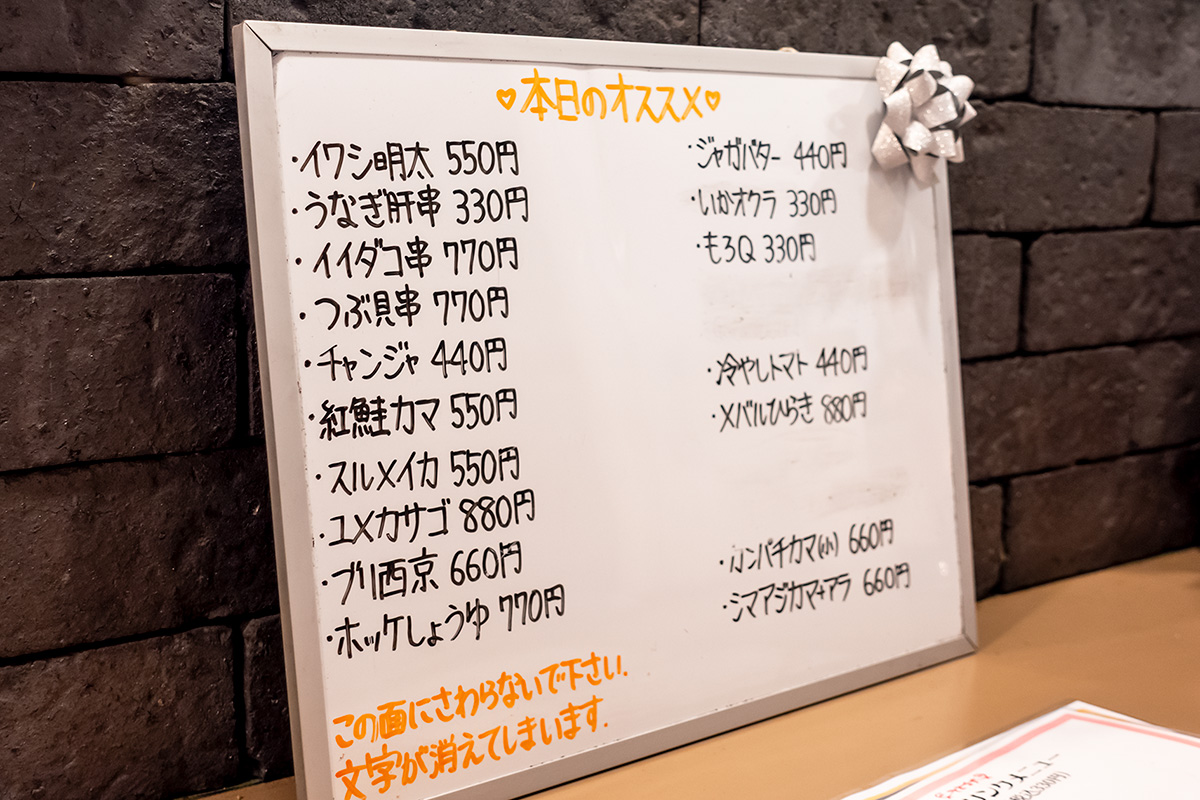 日替わりのオススメにも惹かれる。このメニューだけで早くも名店の予感。