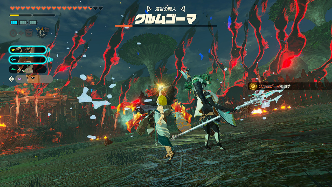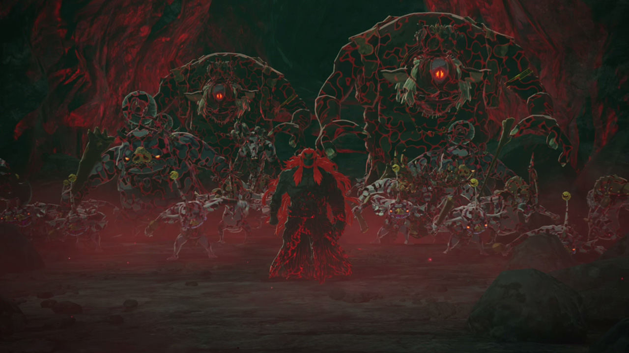 四魔人を倒しつつガノンドロフ軍に支配されたハイラル各地をある程度解放したら、いよいよガノンドロフとの戦いへ。まずはカラモと騎士ゴーレムの二人で地底のガノンドロフの拠点に奇襲をかけます。